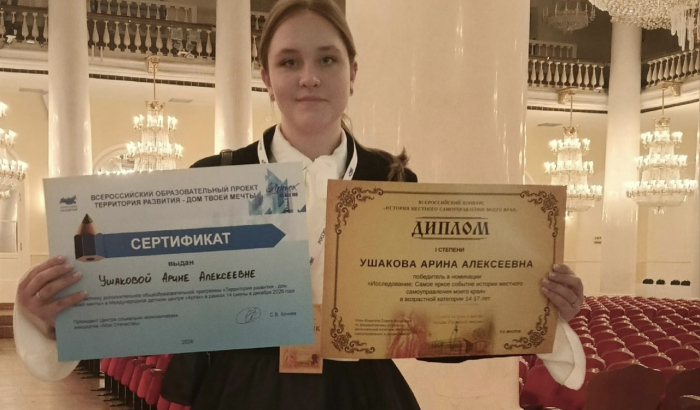 Защита конкурсных работ проходила на базе ведущих вузов страны. В День местного самоуправления, в Колонном зале Дома Союзов состоялась церемония награждения победителей и призёров. По итогам конкурса Арина Ушакова заняла 1‑е место в номинации «Самая яркая страница развития истории местного самоуправления моего края». Кроме того, вошла в топ‑10 лучших участников конкурса и была награждена путёвкой в Международный детский центр «Артек» на специализированную смену «Территория развития» (12+).
