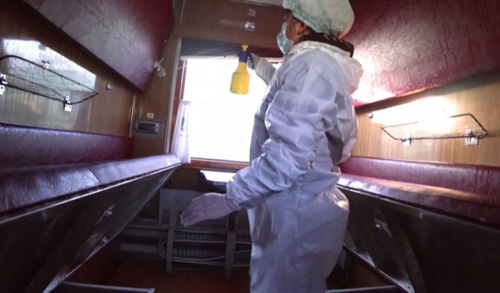 В Мичуринске проводится дезинфекция подвижного состава специальными антисептическими средствами. Обрабатываются все внешние и внутренние поверхности вагона: потолки, стены, окна, подлокотники, сиденья, поручни, пол, а также туалетные комнаты и переходные площадки.