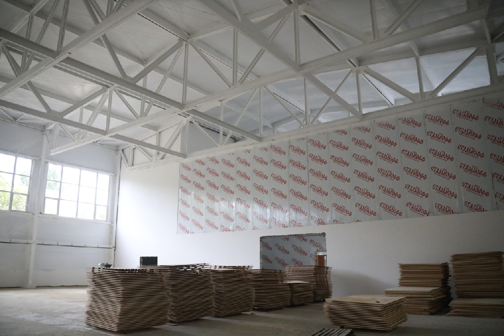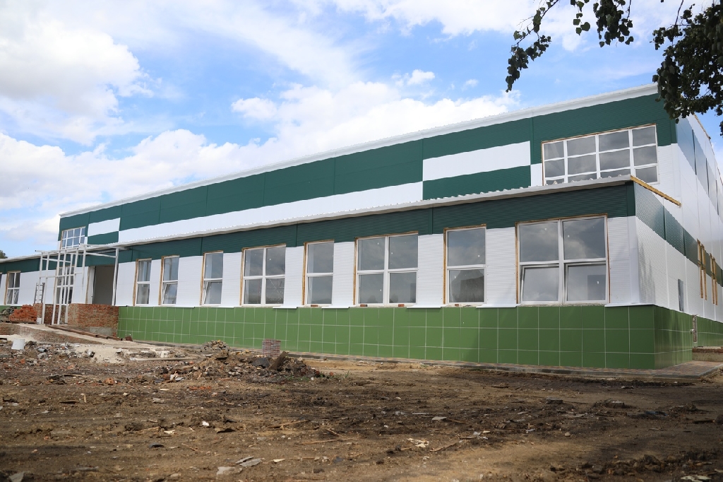 На объекте ведутся работы по внутренней отделке помещений: штукатурка, укладка настенной и напольной плитки, прокладка внутренних инженерных сетей. В игровом зале готовят основание под укладку паркета. Начались работы по благоустройству прилегающей территории.