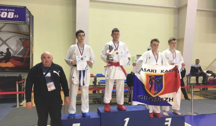 Среди юношей от 14 до 15 лет золотую медаль в дисциплине кумитэ завоевал Даниил Блинников, Артемий Жуков стал победителем в дисциплине ката.